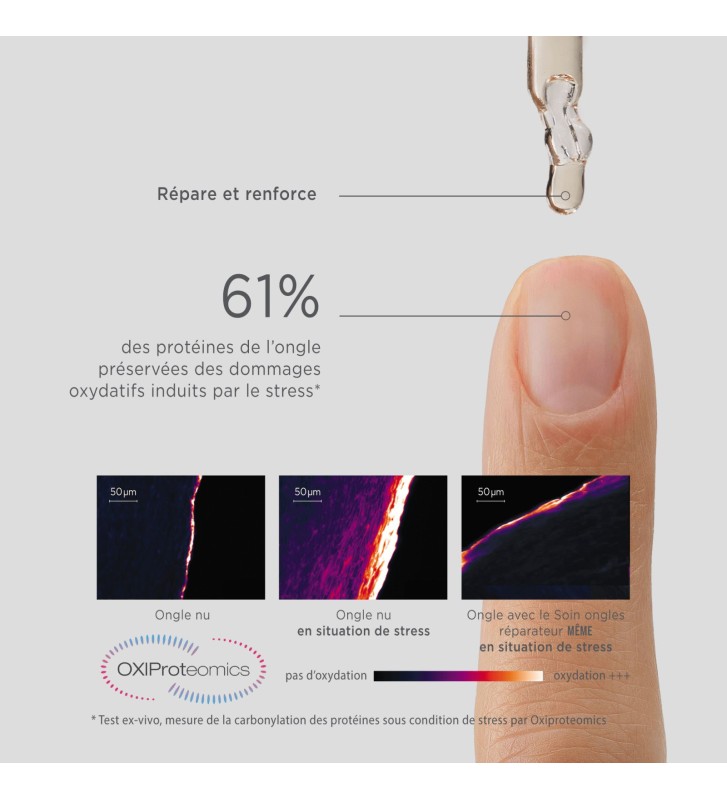 SOIN ONGLES REPARATEUR Nouvelle texture gélifiée pour une application encore plus facile, et une formule clean améliorée pour une efficacité renforcée :