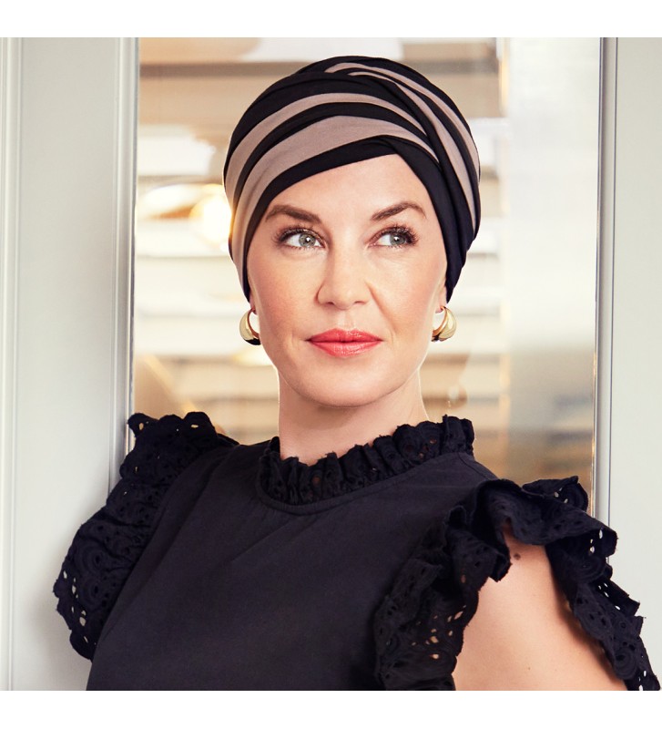Le bonnet Viva est un incontournable de la collection Christine Headwear, la déclinaison en Twin Set crée la différence avec son bandeau amovible assorti pour créer un volume harmonieux.